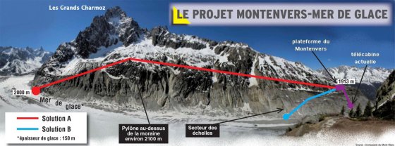 Deux tracés sont envisagés pour accéder à la Mer de Glace par un télécabine :