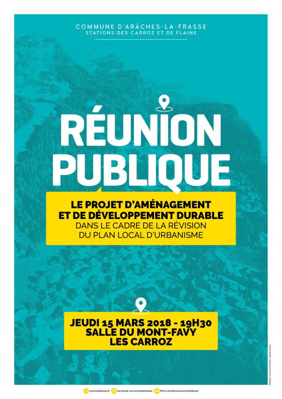 Prenez note : dans le cadre de la révision du plan local d’urbanisme, une réunion publique se tiendra le 15 mars prochain à la salle du Mont Favy (19h30) pour aborder le nouveau projet d’aménagement et de développement durable de la commune.