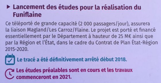 Le texte est plutôt ambigu il parle d’une desserte des Carroz sur un tracé décidé définitivement début 2018, or il s’avère que la moitié de ce projet, le TC Lays-Cupoire, semble avoir été abandonnée il y a quelques mois.