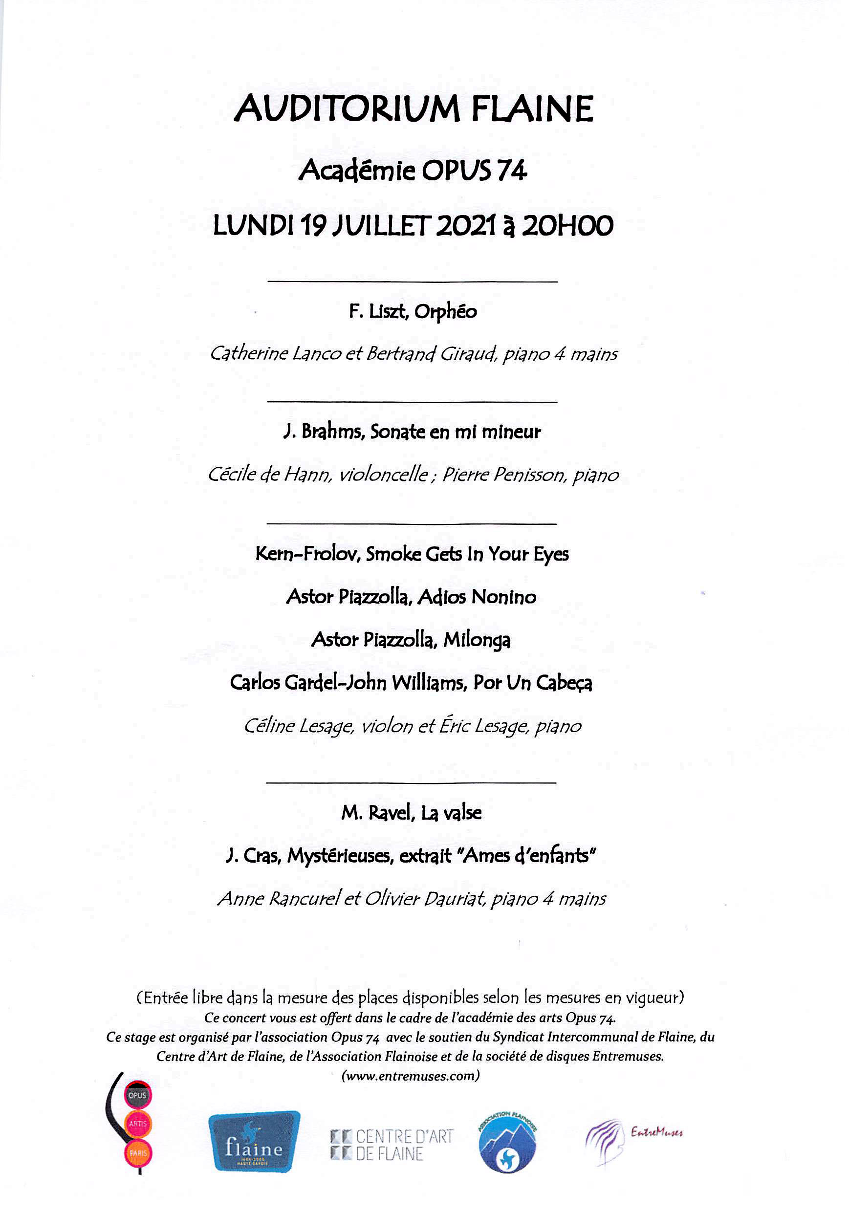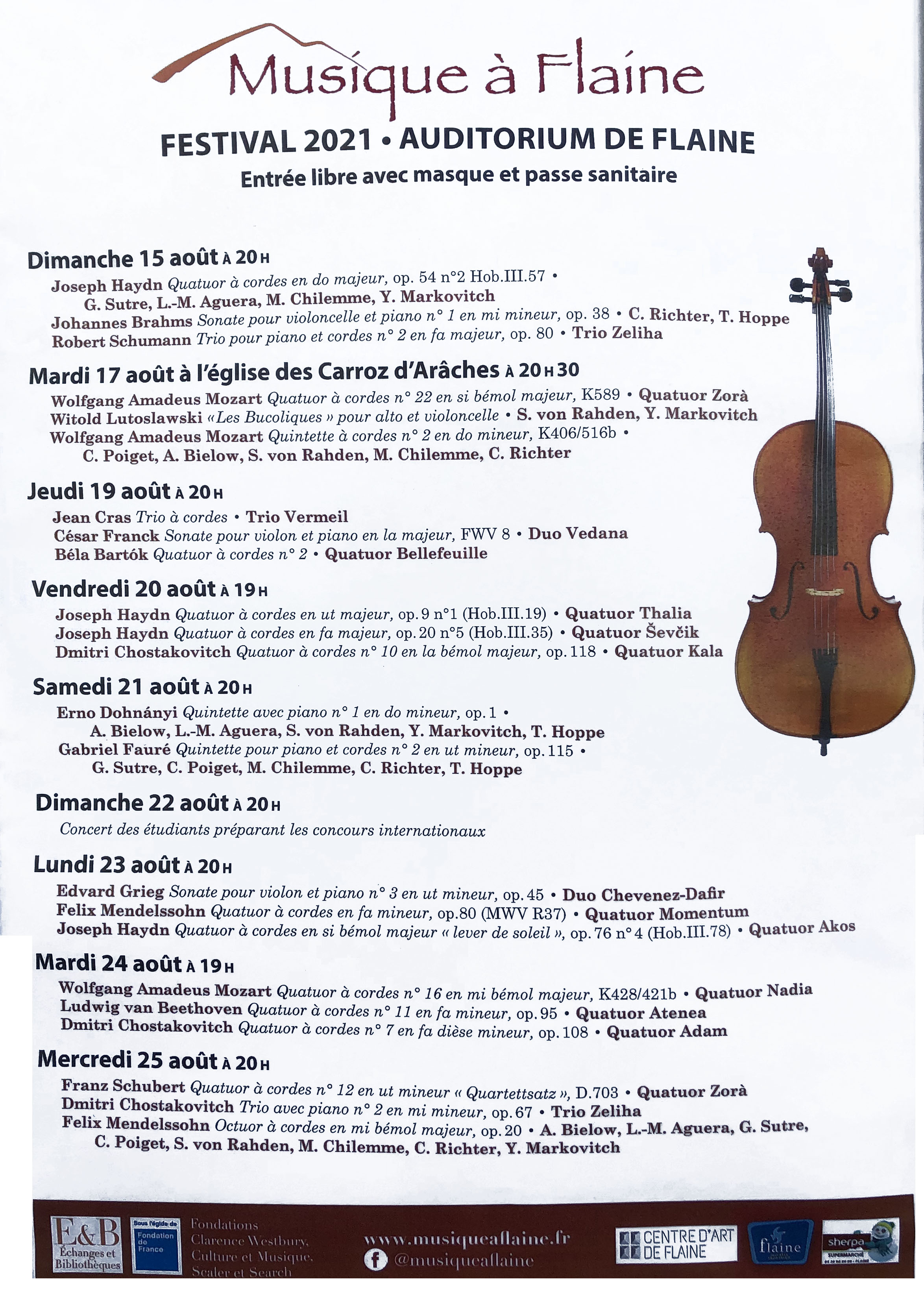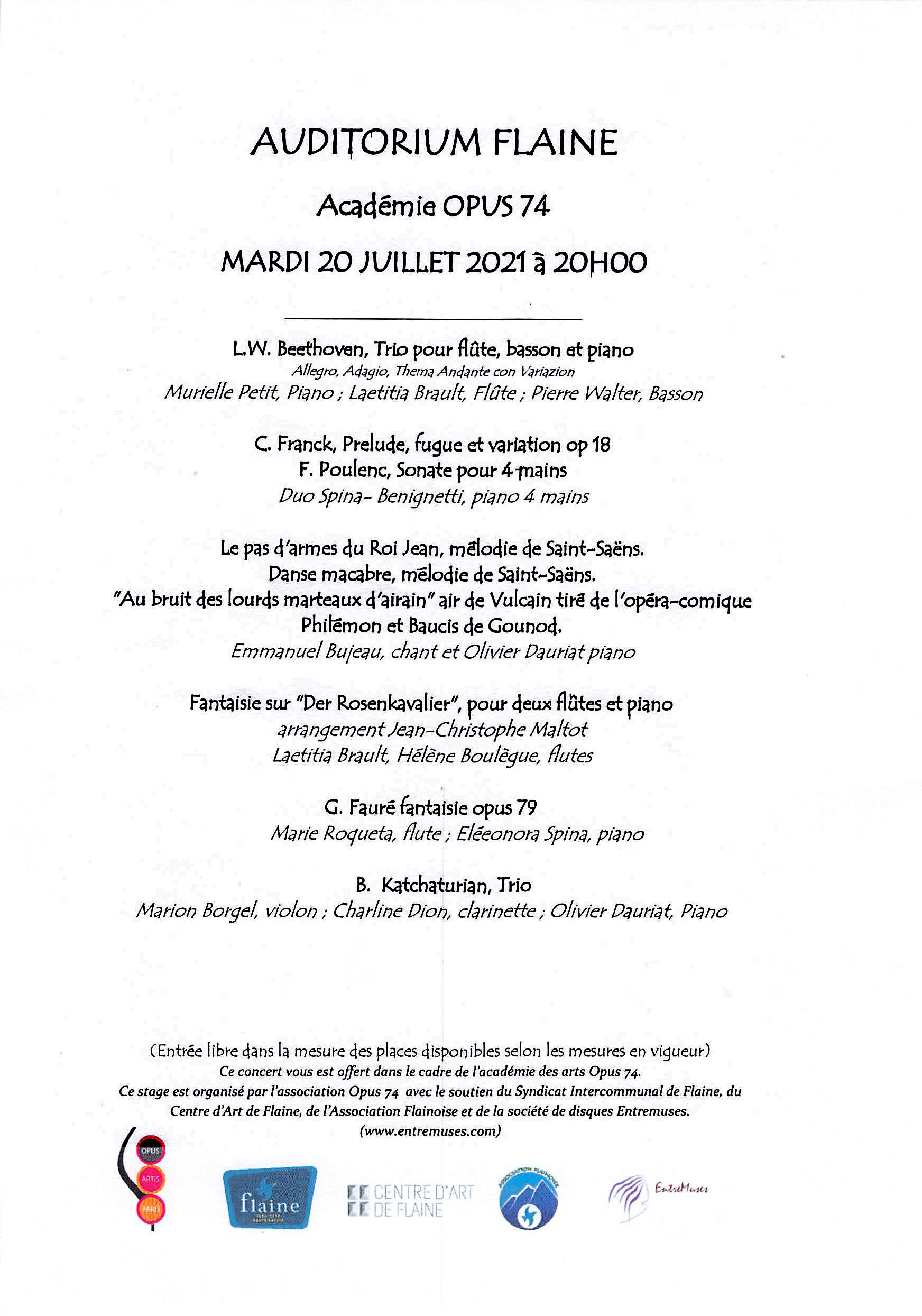 L’Association Flainoise considère les concerts des académies comme un évènement important de la saison d’été, et y participe au plan financier pour le même montant qu’en 2020, 1500 €, mais cette fois partagés entre 3 académies contre 2 en 2020