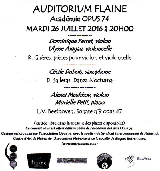 2016-07-27 - Programme des concerts OPUS74 du 25 au 28 juillet 2016